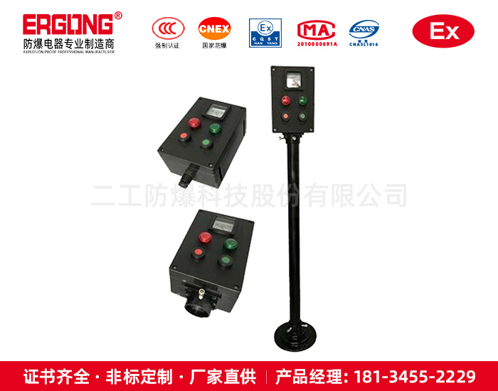 二工防爆,專業(yè)生產(chǎn)防爆電器、防爆燈具、防爆管件、防爆儀器儀表、不銹鋼防爆電器、防爆防腐電器、粉塵防爆電器和防水防塵防腐電器及燈具、防爆風(fēng)機(jī)、防爆空調(diào)、移動(dòng)照明等產(chǎn)品、銷售及技術(shù)服務(wù)為一體的企業(yè)。